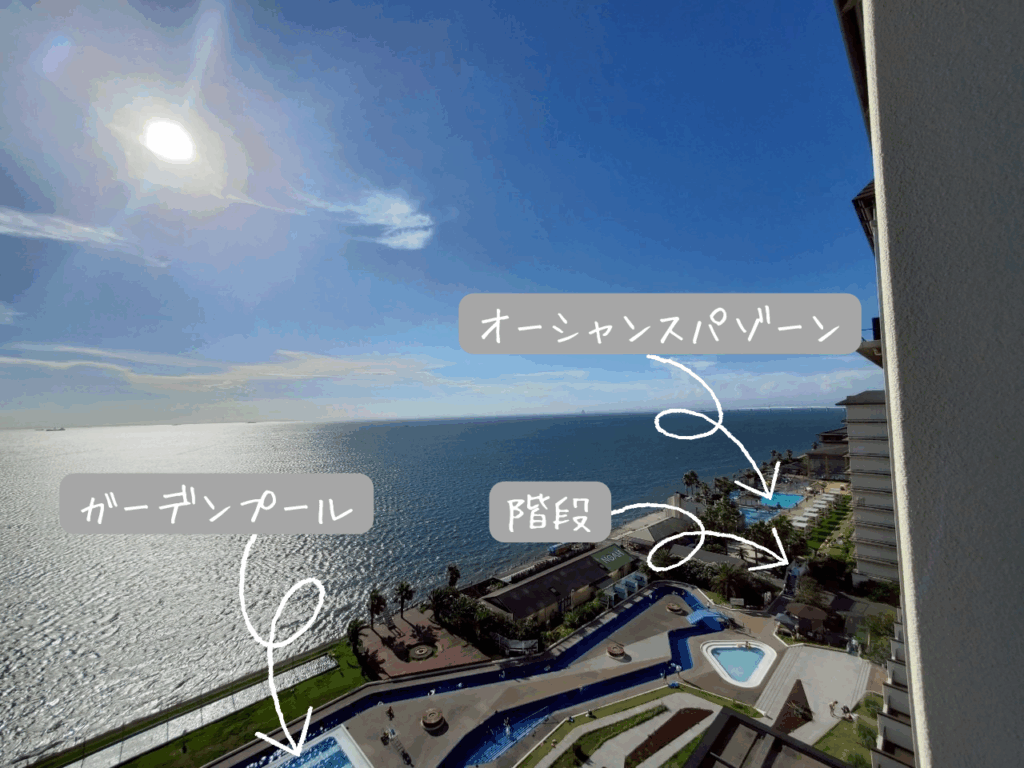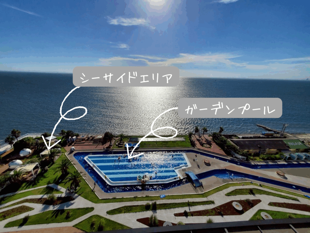 ガーデンプールは富士見亭から繋がるシーサイドエリアの隣にあるので、富士見亭からシーサイドエリアに出てプールで遊んでいる様子を見ていることはできそうでした。