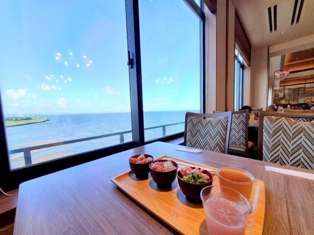 朝食は自由席ということで、海が見える窓側の席を取りました。